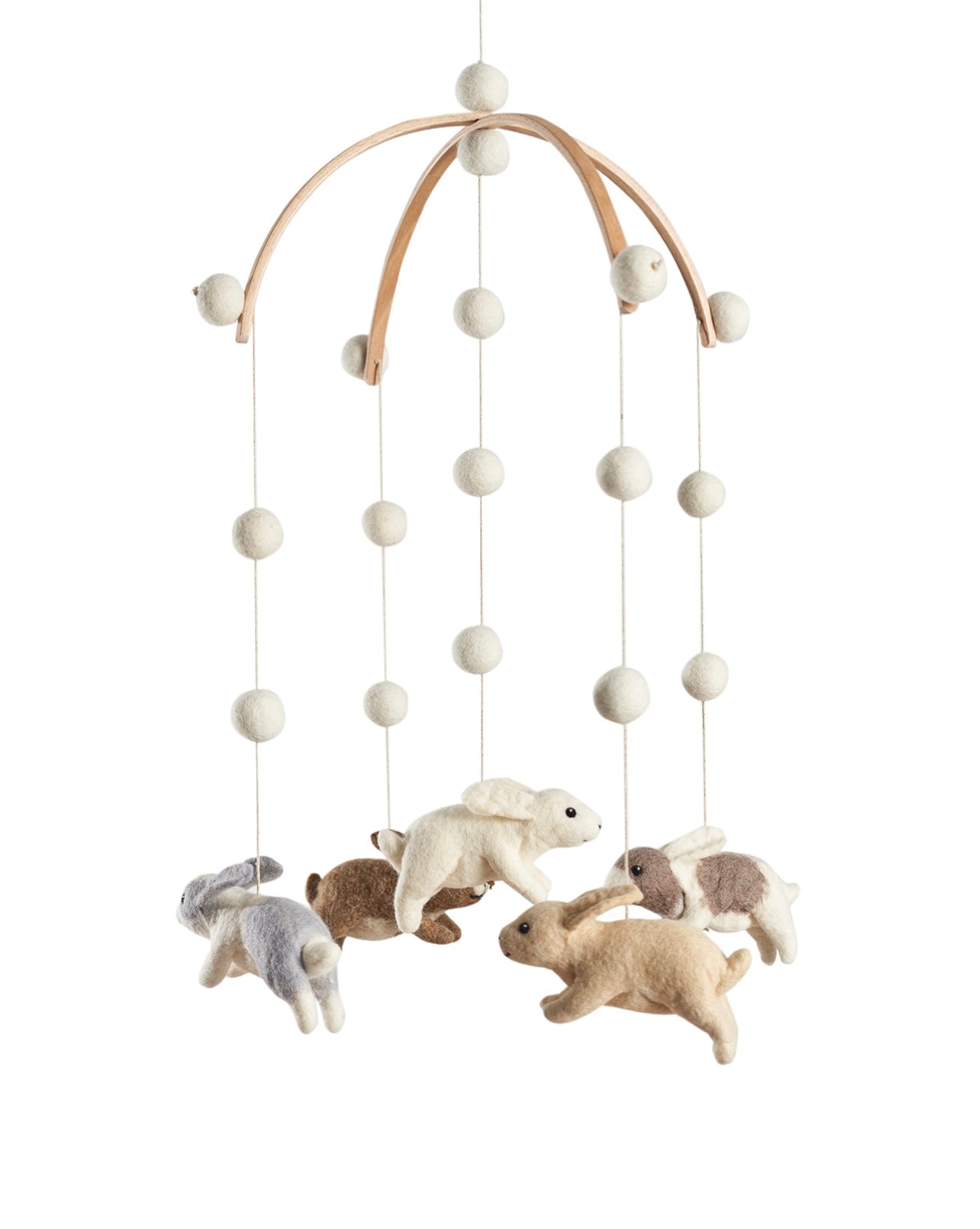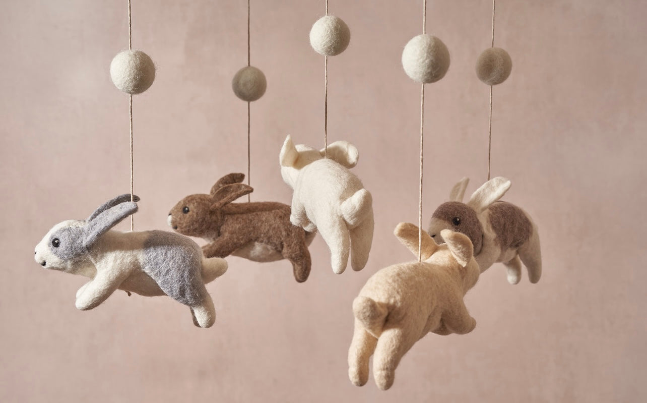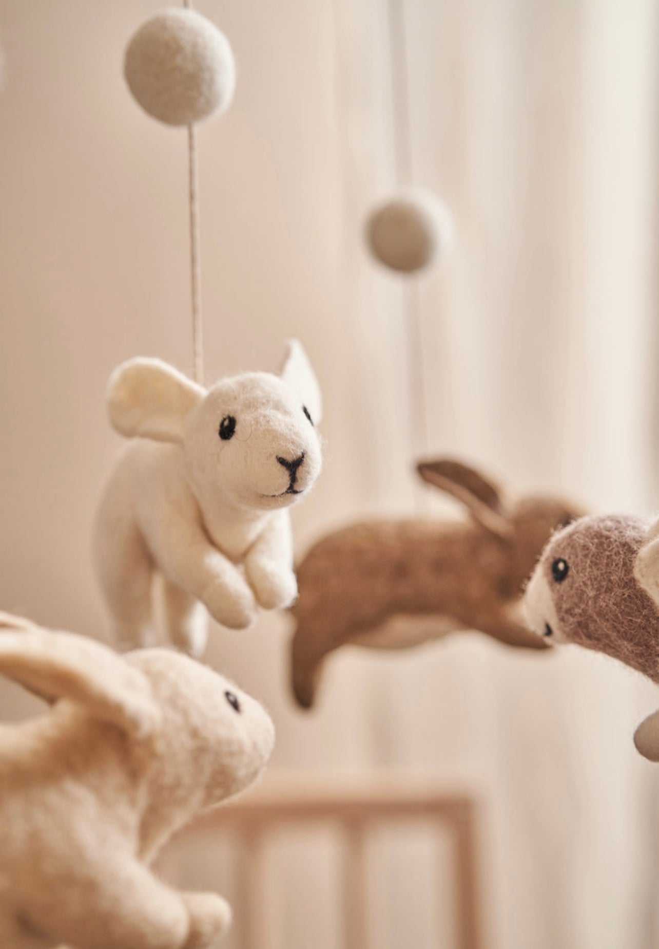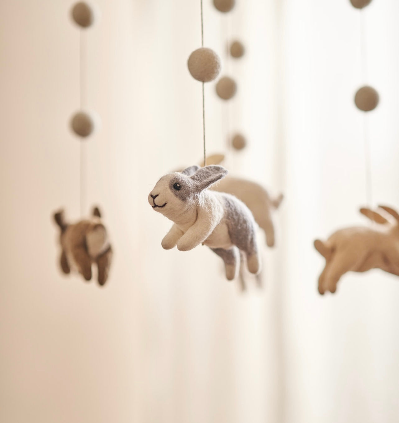 DETAILS: Our whimsical mobiles are designed to soothe as well as to encourage visual development without over stimulating your little one. Each of the five animals on the mobile is expertly handcrafted with care and great detail by a skilled artist in Mongolia from 100% Mongolian wool felt, and suspended from a wood frame. This allows the mobile to rotate gently and silently without disrupting your baby’s sleep.
