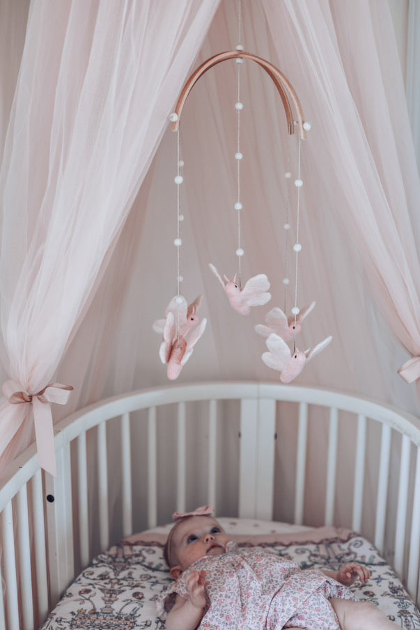 Each mobile is designed to be suspended from the ceiling and allows you to adjust the distance from the crib to ensure the safety of your baby as they grow.