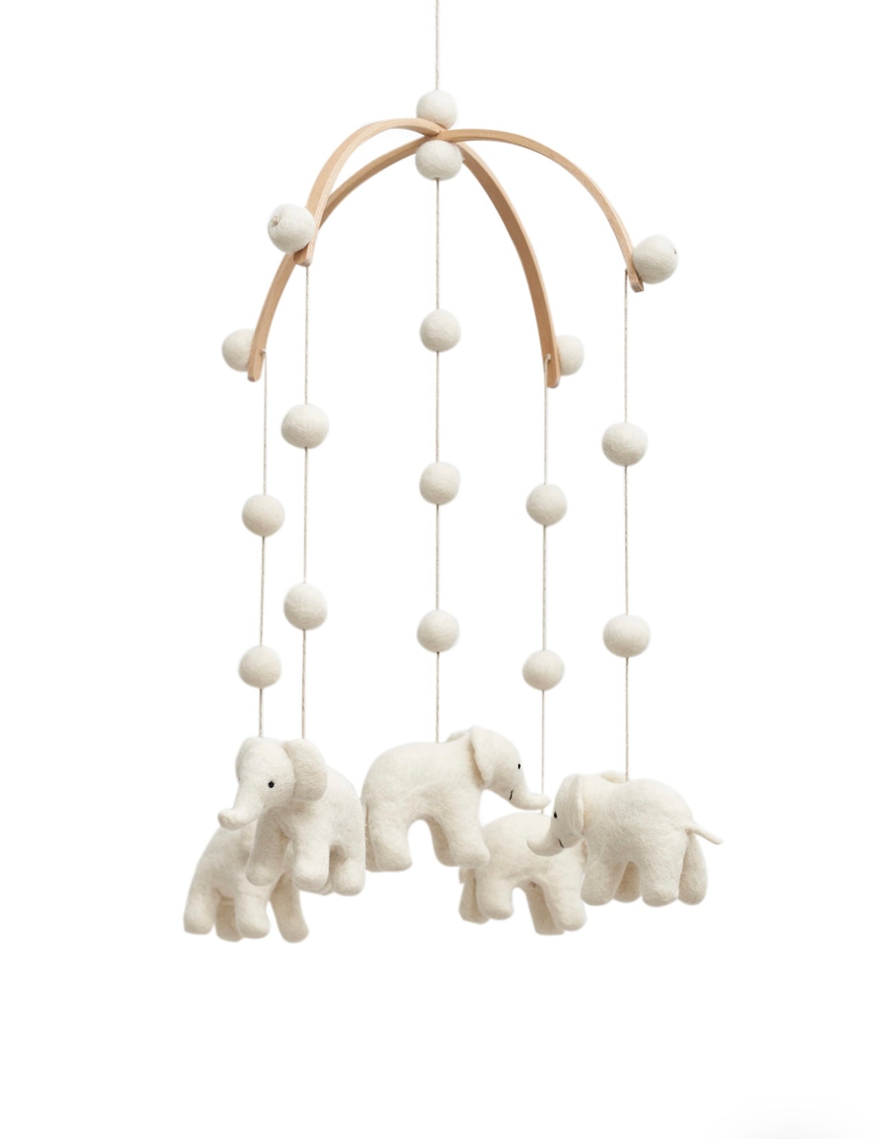 DETAILS: Our whimsical mobiles are designed to soothe as well as to encourage visual development without over stimulating your little one. Each of the five animals on the mobile is expertly handcrafted with care and great detail by a skilled artist in Mongolia from 100% Mongolian wool felt, and suspended from a wood frame. This allows the mobile to rotate gently and silently without disrupting your baby’s sleep.