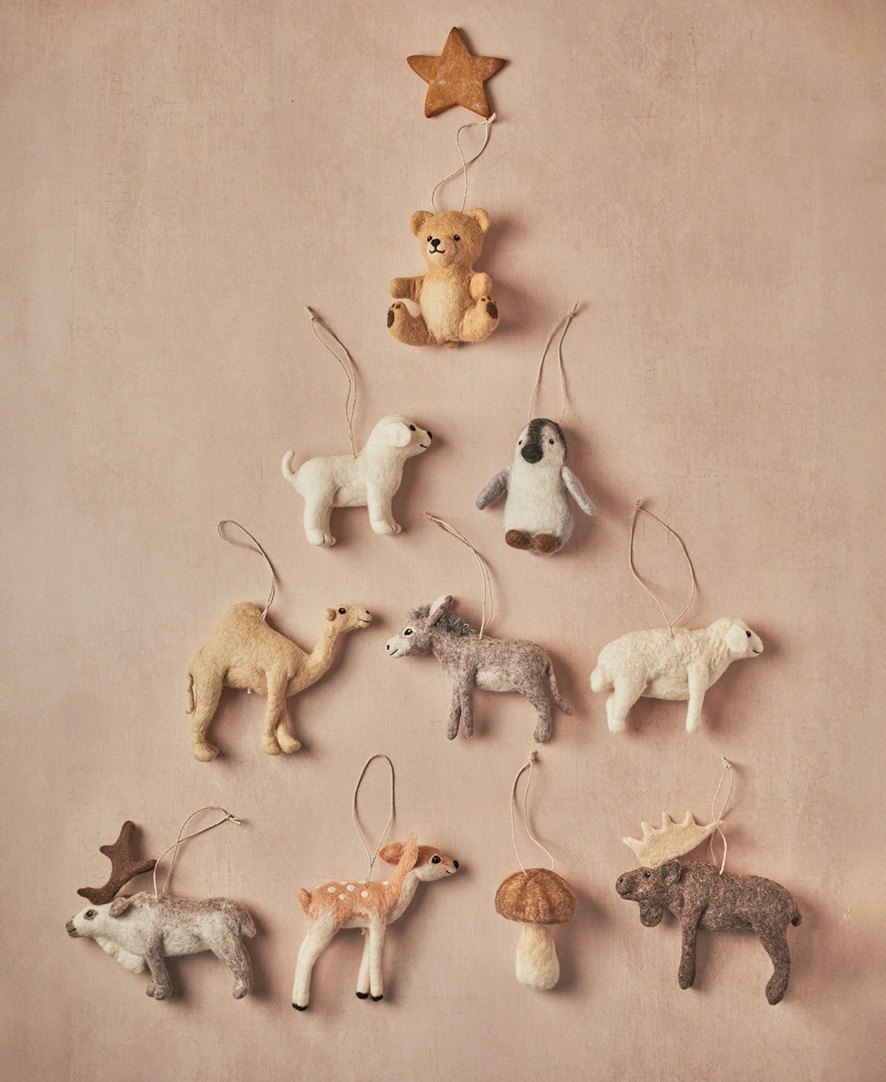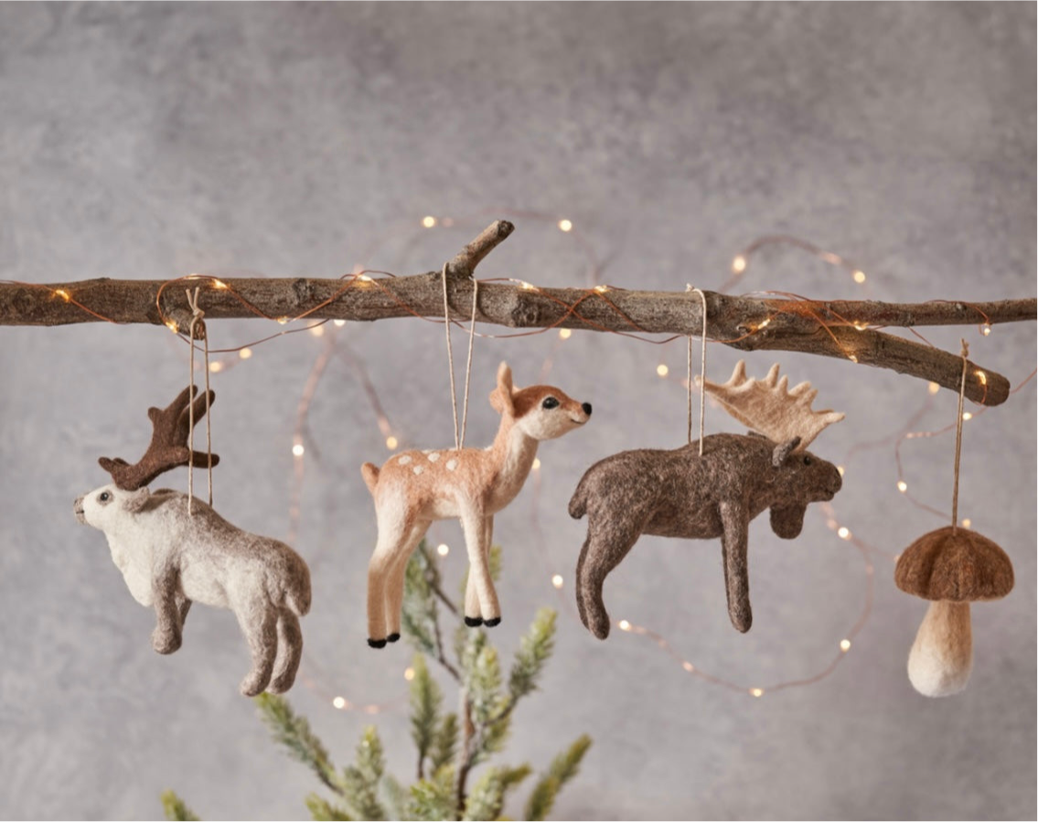 DETAILS: This moose ornament is expertly handcrafted with care and great detail by a skilled artist in Mongolia. Made from 100% Mongolian wool felt, this ornament is ready to hang on your tree and will add warmth and softness to your holiday decor.