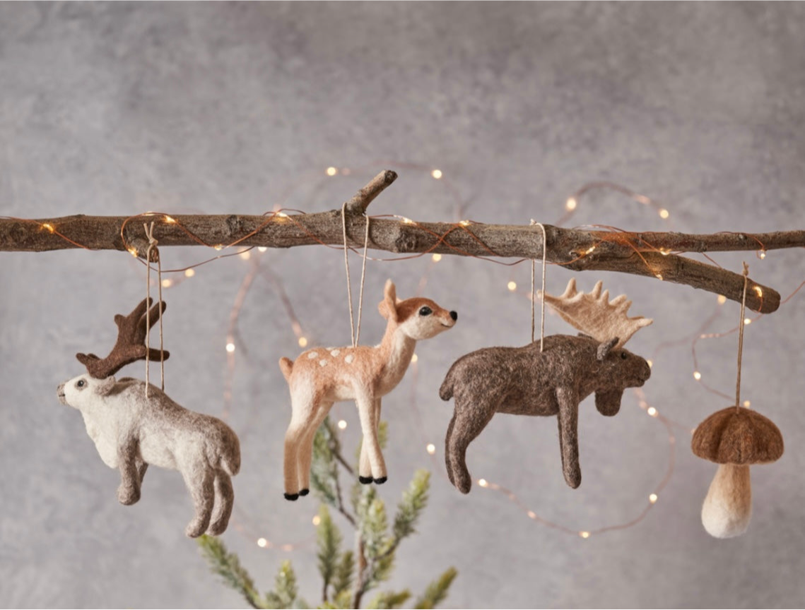 DETAILS: This rein deer ornament is expertly handcrafted with care and great detail by a skilled artist in Mongolia. Made from 100% Mongolian wool felt, this ornament is ready to hang on your tree and will add warmth and softness to your holiday decor.