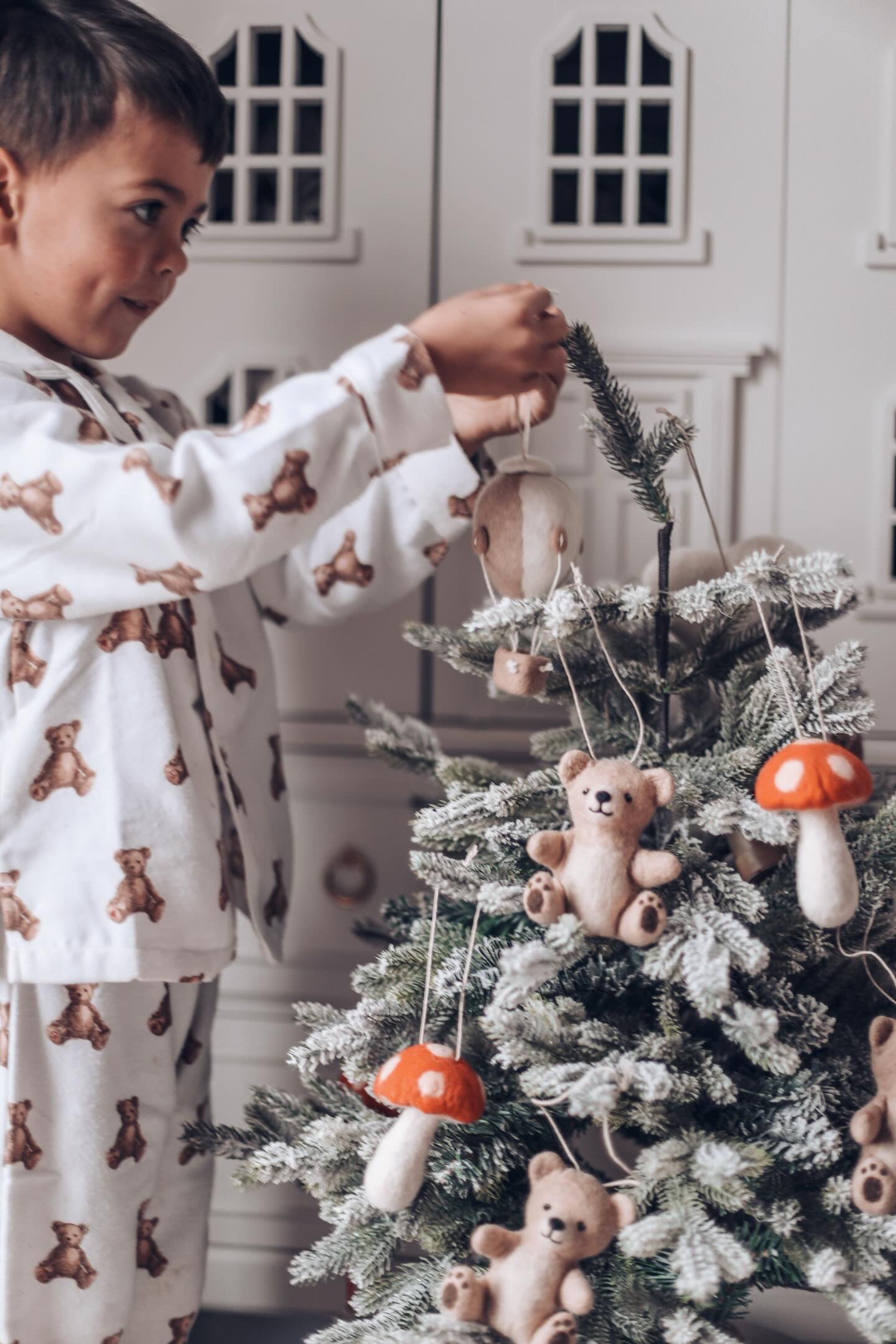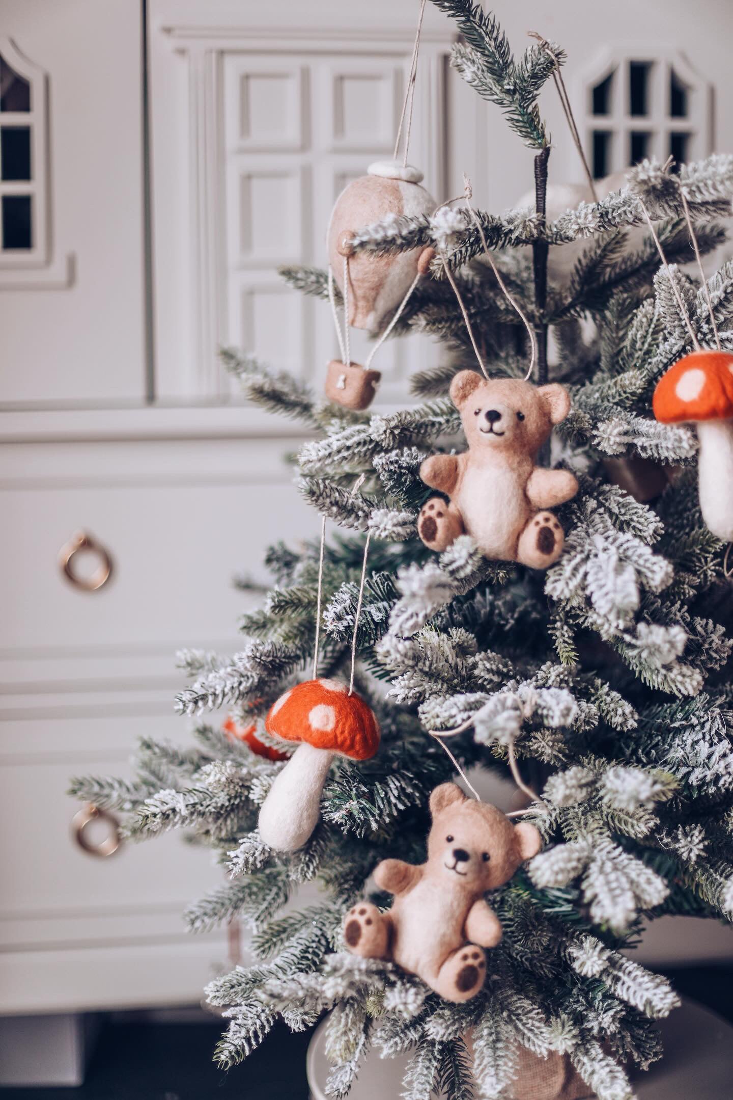 DETAILS: This teddy bear ornament is expertly handcrafted with care and great detail by a skilled artist in Mongolia. Made from 100% Mongolian wool felt, this ornament is ready to hang on your tree and will add warmth and softness to your holiday decor.